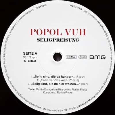 Track list from Kosmische Musik 58009 - 1974: