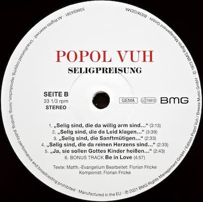 Track list from Kosmische Musik 58009 - 1974: