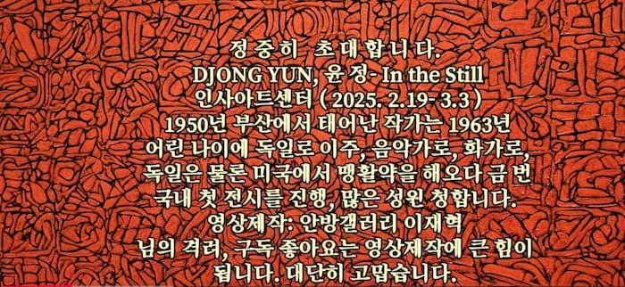 "Djong Yun, daughter of composer Yun Isang (1917-1995), opened her first solo exhibition as a painter on February 19, 2025, at the main exhibition hall on the first floor of the Insa Art Center in Insa-dong. The exhibition will continue until March 3.